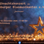 Weihnachtskonzert der Schönburger Blasmusikanten e.V. Am Sonntag, den 14.12.2025 ab 17:00 Uhr findet in der Kirche zu Schönburg das Weihnachtskonzert der Schönburger Blasmusikanten e.V. statt. Datum: 09.12.2025